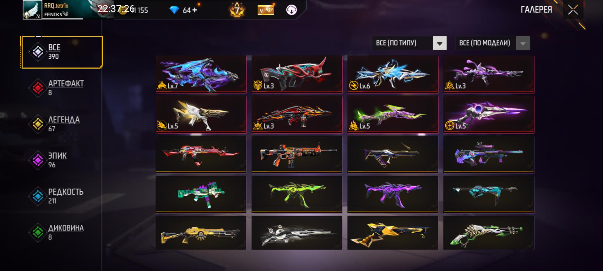 🌈Скины на оружие: 27;
