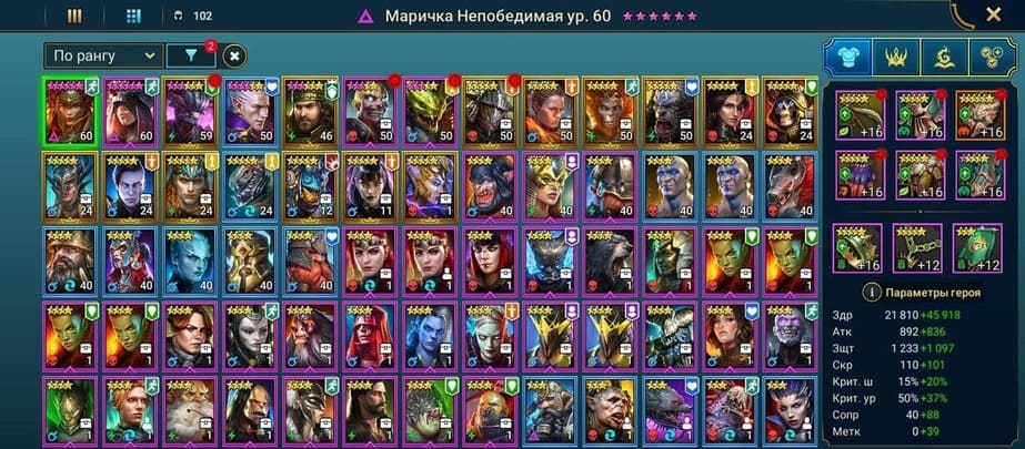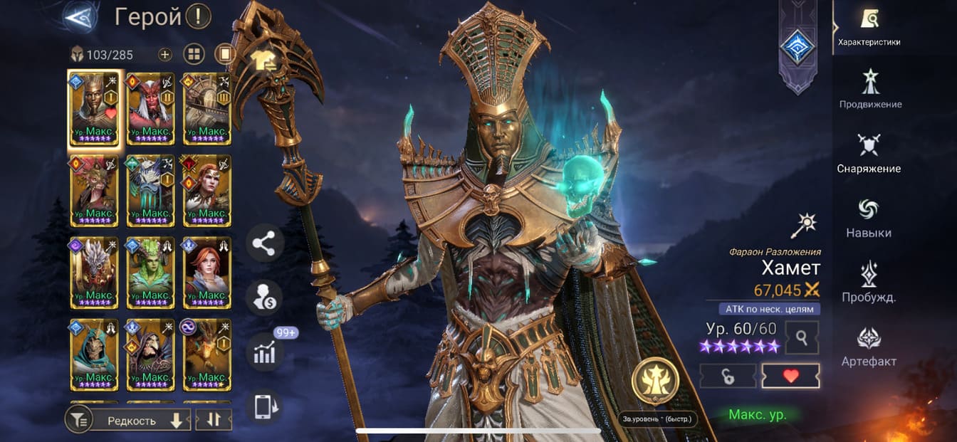 ⚡Уровень: 66 🔥Количество героев:: 103 💪Сила: 700к