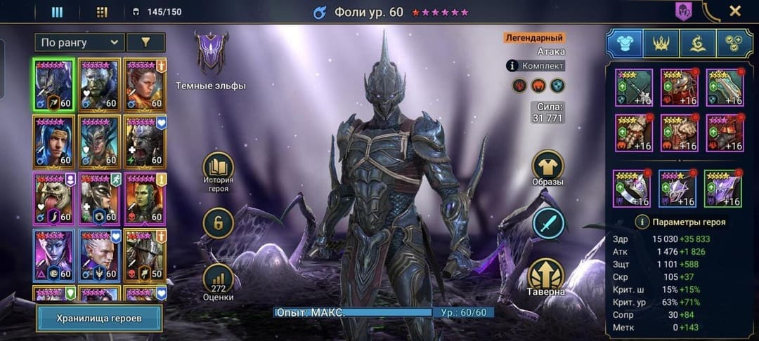 ⚡Уровень: 85 🔥Количество героев:: 272 💪Сила: 900к