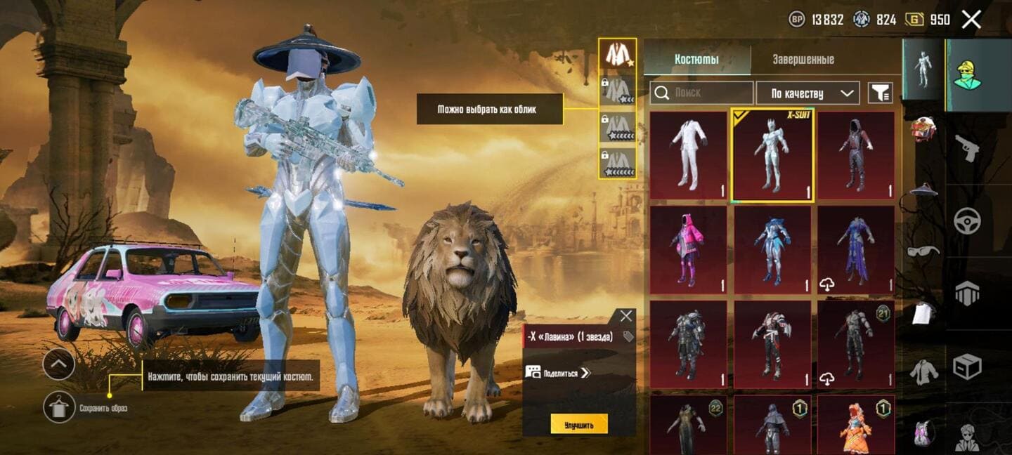 👚Топ костюмы: 149; ⭐️Royale Pass: с 4 сезонна; 🌈Скины на оружие: 23;