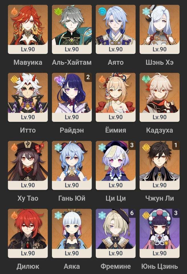 📈 Ранг: 60 🧍♀️ Персонажи: Мавуика, Аль-Хайтам, Аято и другие ✨ Примогемы: 115