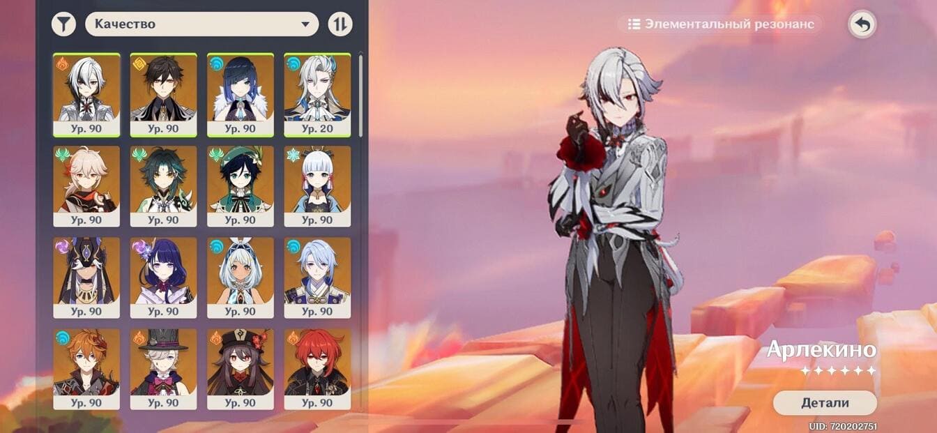 📈 Ранг: 60 🧍♀️ Персонажи: Арлекино, Чжун Ли, Е Лань, Нёвиллет и другие ✨ Примогемы: 43