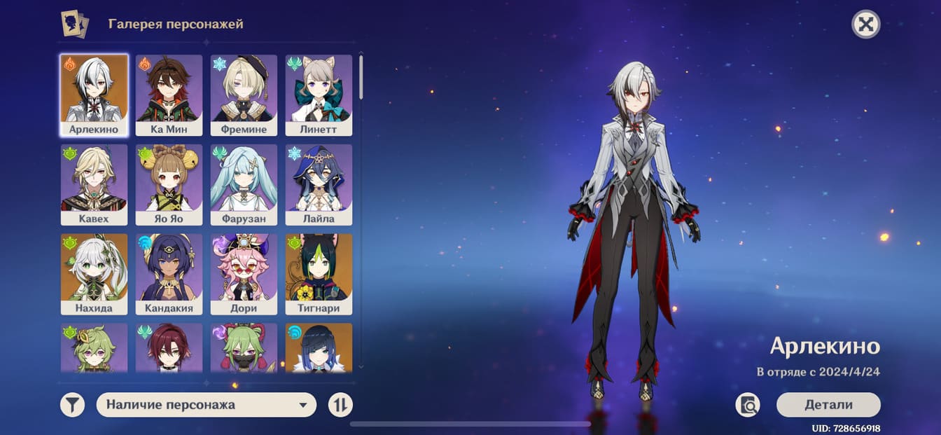 📈 Ранг: 58 🧍♀️ Персонажи: Арлекино, Нахида, Тигнари и другие ✨ Примогемы: 484