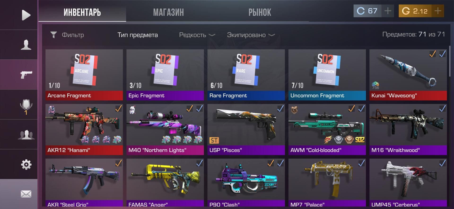 💰Голда: 2.12;🧤Перчатки: 1⭐️Редкие скины: 3
