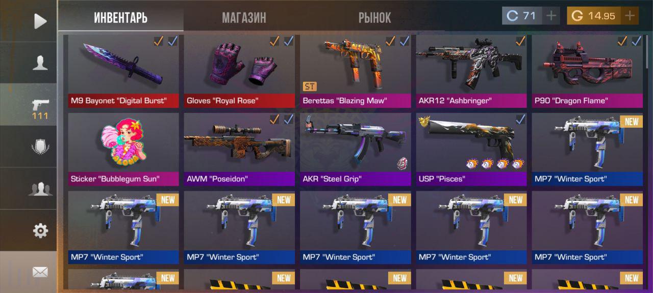 💰Голда: 68.42;🔪Ножи: 5;⭐️Редкие скины: 12