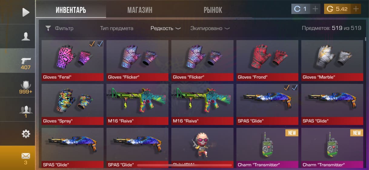 💰Голда: 10.64; 🔪Ножи: 1; ⭐️Редкие скины: 3